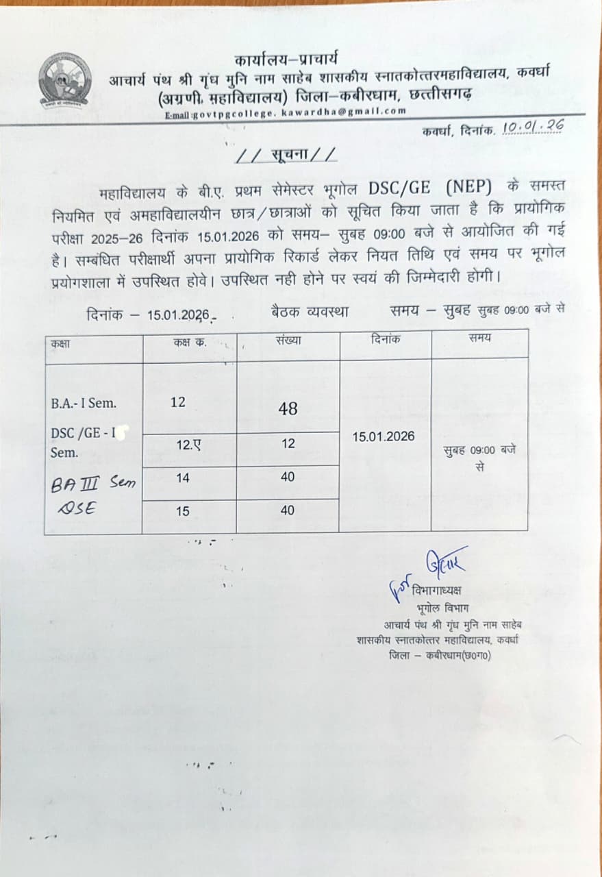 notice for geography subject b.a. i & iII Sem