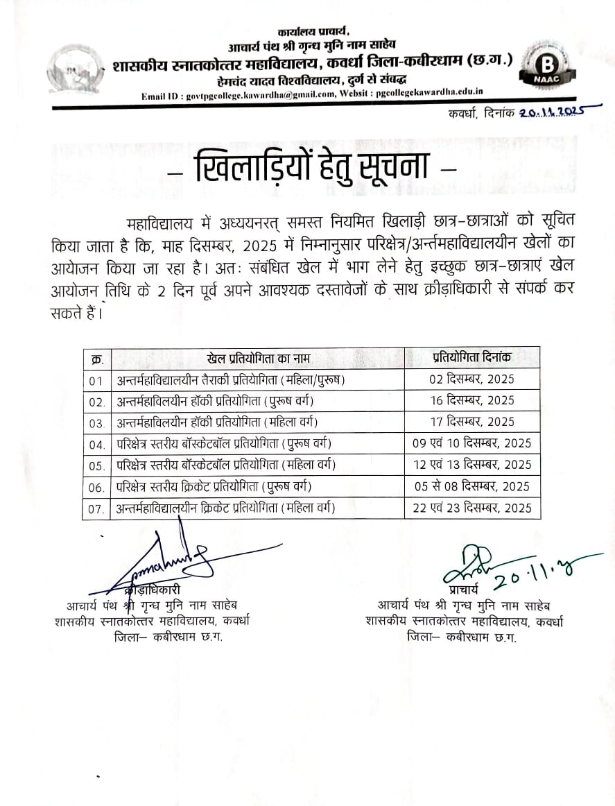 एथलेटिक एवं बैडमिंटन प्रतियोगिता सम्बन्धी सूचना